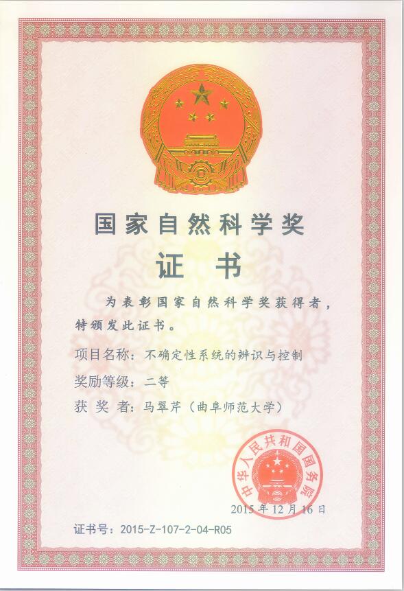 2014年9月徐润获山东省高等足球吧 优秀科研成果奖自然科学类一等奖