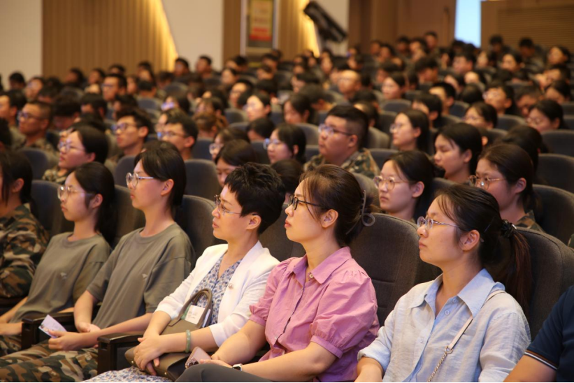 邹文明教授以马克思主义经典作家马克思、恩格斯及历史名人拿破仑等与数学的深厚渊源为引,深入浅出地讲述了数学学科的辉煌历史及其在推动社会进步和人类发展中的关键作用。他结合自身丰富的学术经历,与现场师生分享了“如何学好数学”的心得体会,强调在数学探索的道路上,唯有坚韧不拔、勇攀高峰,方能领略科学的无限风光。他通过华罗庚等数学家的感人事迹,生动展现了新时代科学家精神的核心内涵:胸怀祖国、服务人民的爱国精神;永攀高峰、敢为人先的创新精神;追求真理、严谨治学的求实精神;淡泊名利、潜心研究的奉献精神;集智攻关、团结协作的协同精神;甘为人梯、奖掖后学的育人精神。他鼓励2024级新生要立大志、做有德之人、要有坚韧不拔的意志,为实现民族复兴贡献力量。