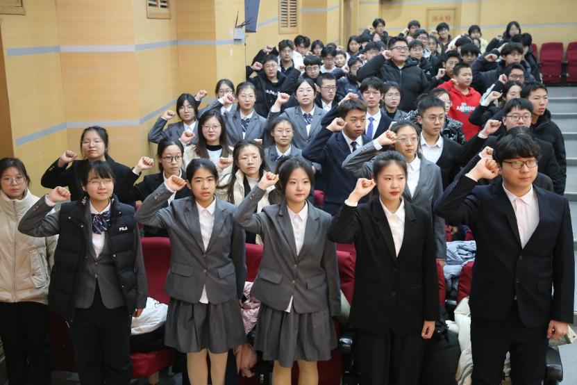学生代表王淑萌宣读期末诚信考试倡议书,并带领全体同学庄严宣誓。