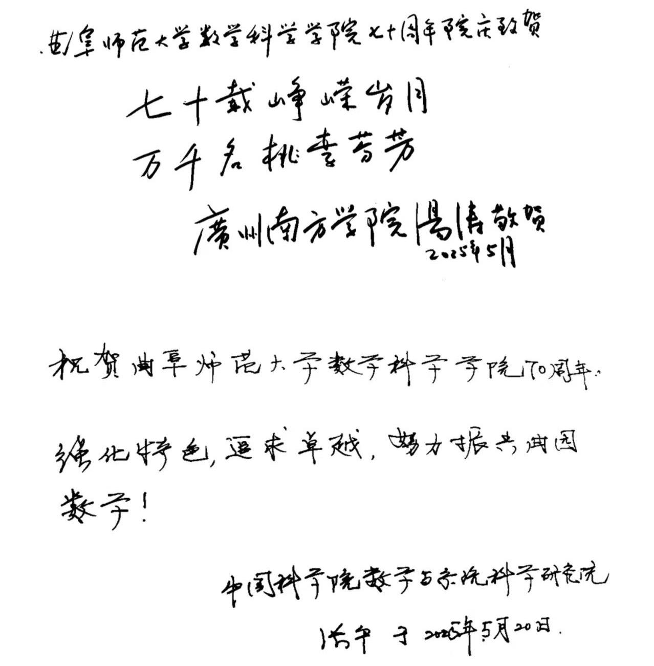 建院70周年庆典暨学科发展大会隆重举行。社会各界嘉宾、广大校友和师生代表齐聚一堂,共同回顾数学学科办学七十年以来辉煌成就,探讨和展望数学学科高质量发展的未来。
