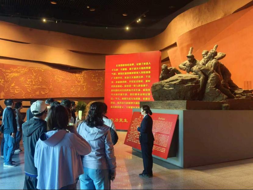 在红旗渠纪念馆,全体人员共同重温了林县人民的奋斗故事,全面学习“战太行、出太行、富太行、美太行”的奋斗历程,从十年开凿“人工天河”的英雄壮举中,深刻感悟“自力更生、艰苦创业、团结协作、无私奉献”的红旗渠精神。师生代表重点学习了习近平总书记考察红旗渠时的重要指示精神,并深刻认识到,红旗渠精神蕴含坚持党的领导、坚持人民至上等丰富内涵,正是正确政绩观的生动实践。林县群众“以尺寸之功,积千秋之利”的价值追求,也为新时代高校教师践行立德树人使命、创造经得起实践、人民和历史检验的实绩提供了深刻启示。