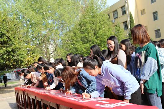 最后,在各位老师的带头下,同学们在宣传条幅上书写下参与创建“平安公寓”的心声,为创建文明校园、平安校园、和谐校园奉献自己的一份力量。