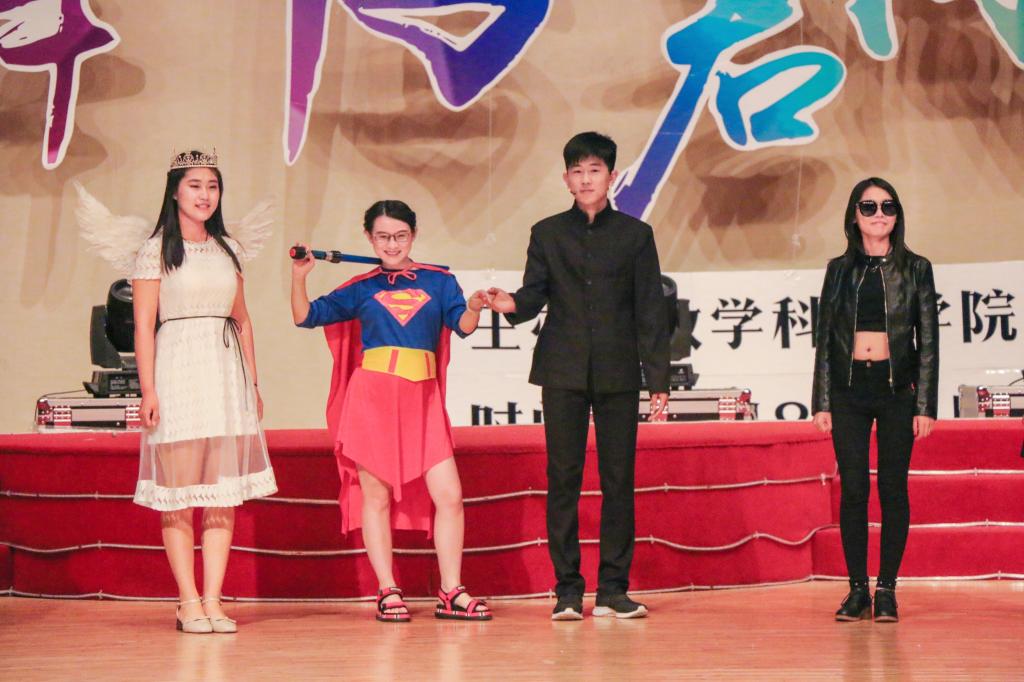 全体师生对2014级毕业生顺利完成学业致以了热烈的祝贺和衷心的祝福。 随着红色幕布的缓缓升起,充满青春活力的开场舞表演《最好的舞台》拉开了整场晚会的序幕,掀起了晚会的第一个高潮。在主持人诙谐风趣的台词串联下,晚会顺利进行。本场晚会内容丰富形式新颖,有优美的舞姿,悠扬的歌声,小品和脱口秀巧妙融入了歌舞等其他元素,现场气氛轻松活跃,着实为观众带来了一场精彩的视听盛宴。由苏再扬的脱口秀表演《麻豆》巧妙的将2014级班长团支书、以及辅导员杜晨曦老师的走秀结合起来,他们默契的配合,精美的造型,独特的亮相将现场的气氛推向制高点。此外,足球吧