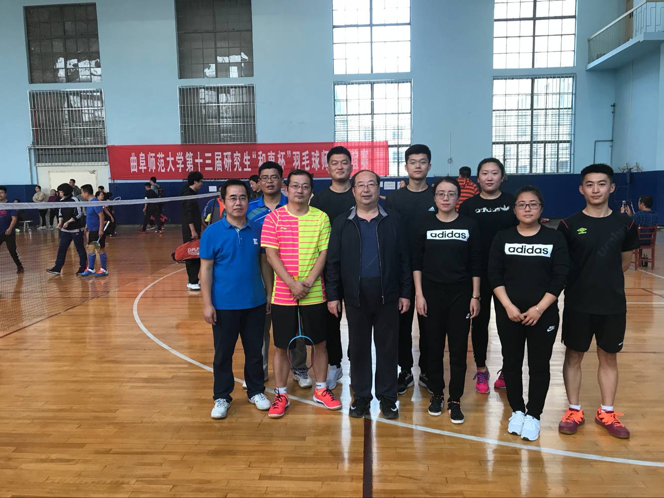 协办的第十三届研究生“和衷杯”羽毛球师生联谊赛在体育馆隆重开幕。