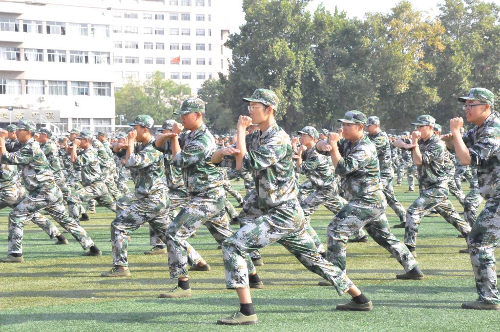 早上八点半,国歌响彻南操场,五星红旗缓缓升起,新生军训汇报表演正式拉开了帷幕。同学们站在整齐划一的队伍中以饱满的热情和嘹亮的口号迎接领导和老师的检阅。在汇报表演环节中,各方队进行分列式表演,新生们步履铿锵,目光坚定,身姿挺拔,充满了青春向上的活力。走齐步整齐划一,走正步步履矫健,敬军礼动作标准,喊口号声音嘹亮;动作利落的军体拳,舒展流畅的心理健康操和教官们的实战演练等表演也是精彩绝伦。紧接着,全校新生进行了论语背诵,儒韵芬芳,满韵南操,论语的气韵响彻演练场上空的那一刻,将本次汇演的氛围推向了高潮。随后,新生代表进行了作了发言。他代表全体新生表示,在今后的学习生活中,一定严格按照军人的标准严格要求自己,不断提高自身修养,提高政治水平,努力做无愧于祖国、人民、时代的优秀学生。军训汇演在犁牛之子歌声中落下了帷幕。
