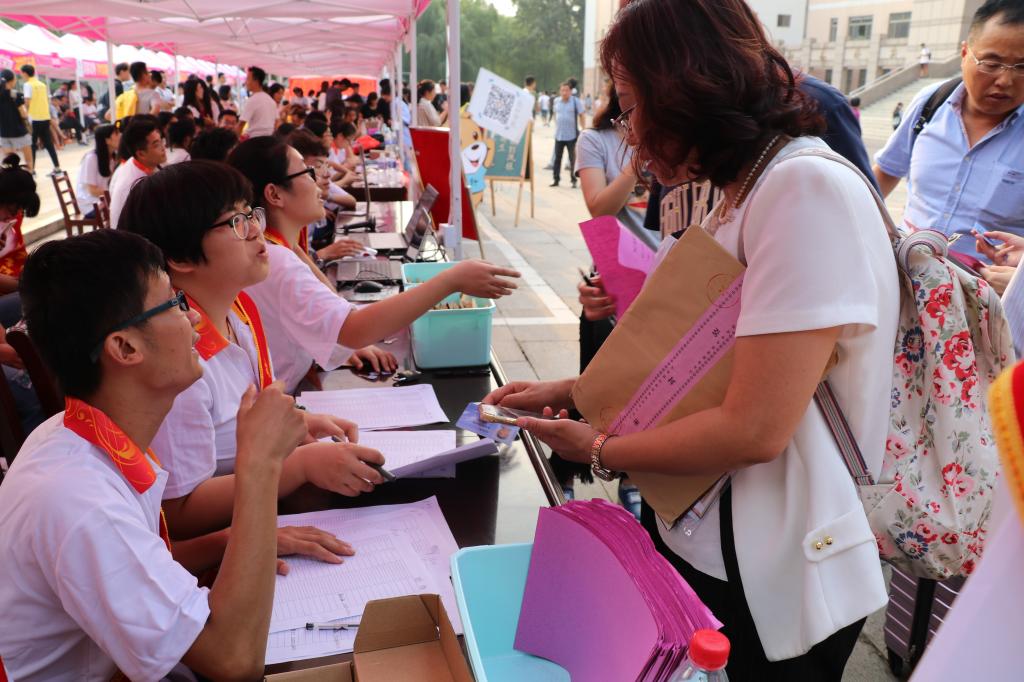 微信公众号的方式别出心裁;富含数学特色的迎新标语、走向成功的签字展板和2017届优秀毕业生光荣榜再一次让新生感受浓厚的学风氛围。而特别设立的留影角、有问必答的家长见面会、“以信迎新, 以心动新”的写信送祝福活动,更是将温暖和祝福传递到每个新生和家长的心中。