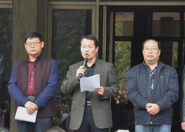 学生工作处处长、武装部部长杨永明,团委书记屈跃宽,数学与统计足球吧