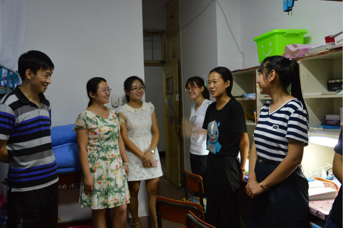 研究所副所长郑召文、辅导员郅艳梅、张惠在院学生会主席团的陪同下,专程走访了新生宿舍,亲切慰问2016级新生,了解他们入学后的情况,并送去温暖和关心。