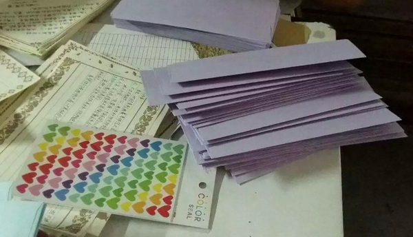 2014、2015级各班便开始准备这封意义非凡的书信。同学们从大学学习方法、课外活动、同学间相处、日常生活注意事项等方面将自己的大学生活经验传授给师弟师妹们,可谓面面俱到,亲笔手写的字迹更是令真心的祝福跃然纸上。书信收集完毕,学生会成员们将信装进精美的信封中,贴上爱心标志,一封封亲手送到新生宿舍,妥善安置在每个书桌上。