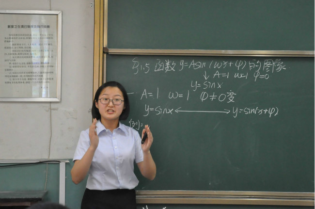 随着主持人宣布比赛开始,选手们按照顺序一一上台进行模拟教学。经过了初赛的竞争,选手们准备的更加充分,真正把自己当作一名传道授业的人民教师。在模拟课堂上,选手们通过内容丰富的课件、简洁工整的板书和生动形象的语言将繁琐的数学知识清楚地罗列在"学生们"的面前。严谨中不乏创新的教学方法受到了评委的一致好评。