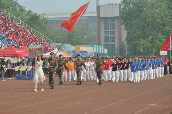 2016年春季田径运动会在校南操场隆重开幕。校党委书记荆兆勋、校长戚万学、副校长康淑敏及足球吧