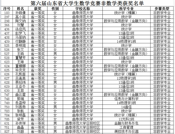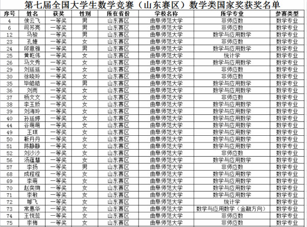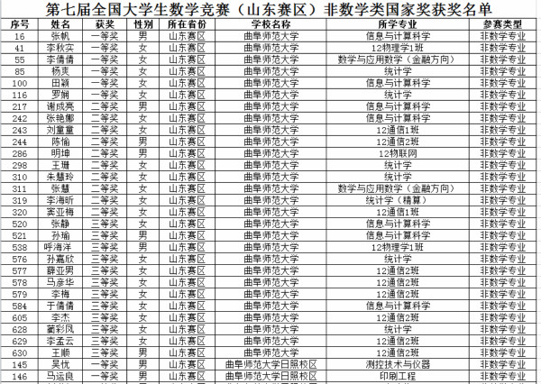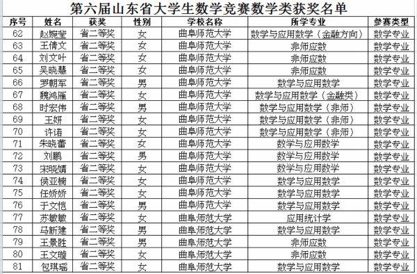 足球吧 参加第六届山东省大学生数学竞赛获奖名单