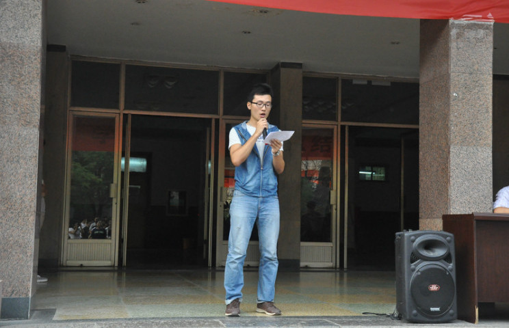 王惠东同学代表获奖学生发言,他呼吁同学们要学会感恩,感谢足球吧