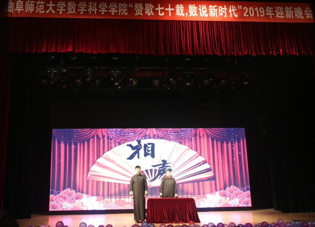 表示祝贺,并对入学后新生学习方面作出勉励,希望其能勤奋好学、踏实奋斗实现自己的人生理想。随着温馨述说考生踏入曲师大的故事、老师向同学们表达问候的开场视频拉开晚会帷幕,一支活泼热辣的开场舞点燃全场气氛。歌曲表演或是如由2019级辅导员徐腾飞领衔的《红旗飘飘》,美声独唱《我和我的祖国》等唱响国家情怀,或是如《涅槃》《我的未来不是梦》等唱出少年激情,或是如《老男孩》《如果有来生》将故事动听娓娓唱来。滑稽逗乐的小品、相声和搞笑舞蹈轮番上阵,既有令人捧腹的笑点,也将校园贷、手机依赖症的等现实问题鲜明反映。幽默诙谐的主持串讲,别出心裁的精彩表演,恰到好处的灯光背景,不时投放的鼓励话语和台前幕后为晚会忙碌的每一个人,都给观众们留下了弥足珍贵的美好回忆。