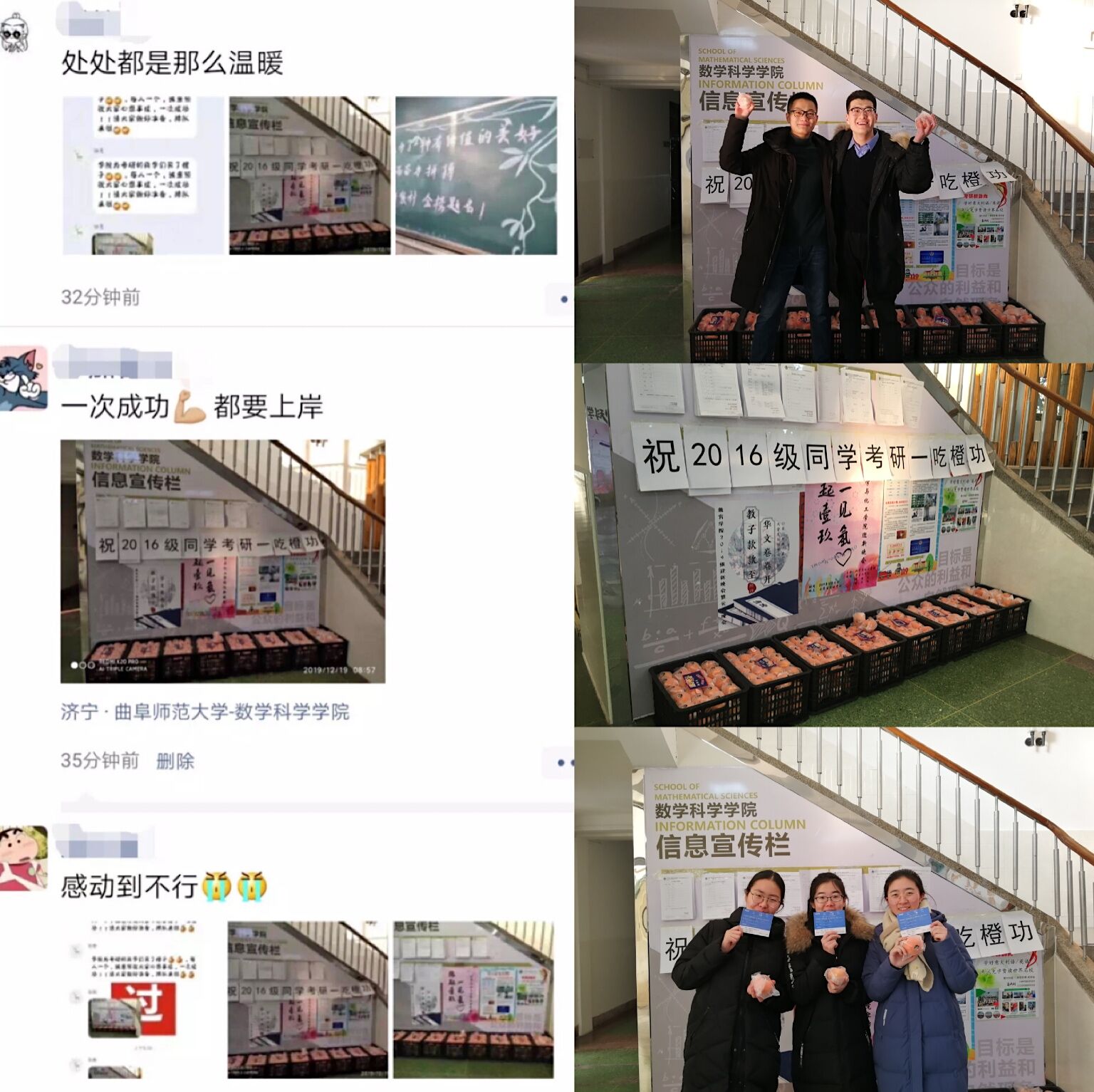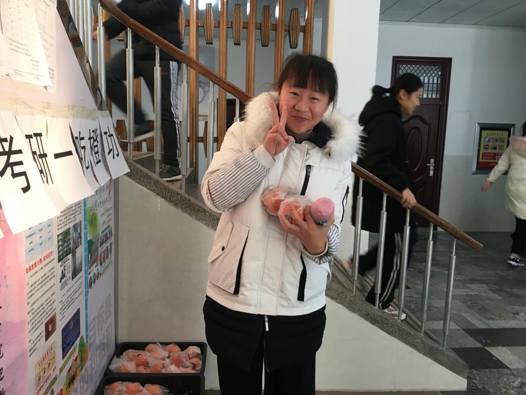 党委副书记曲凤东的带领下,辅导员老师们为2016级考研学生发放新鲜的橙子,预祝同学们心想事“橙”,一次“橙”功。