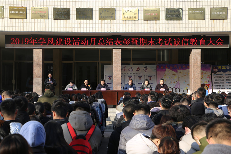 2019年学风建设活动月总结表彰暨期末考试诚信教育大会在数学楼前隆重举行。足球吧