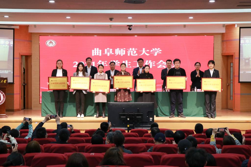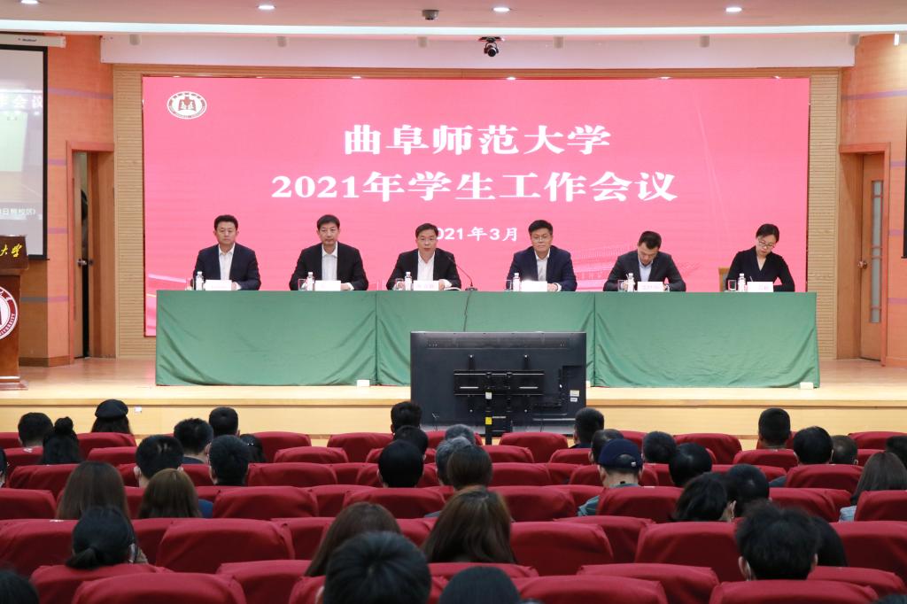 于曲阜校区孔子会堂及日照校区图书馆报告厅召开2021年学生工作会议。会上,足球吧