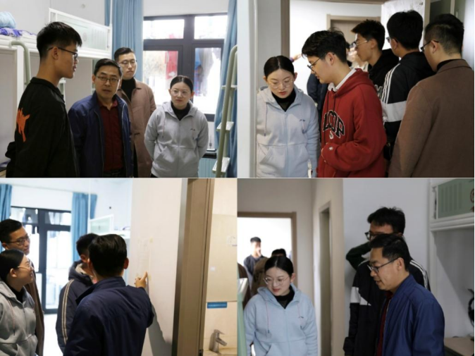 领导、老师们与同学们进行了亲切的交谈,深入了解当前学生的学习及生活情况,帮助学生解决学习、生活中的困难,对于同学们提出的问题进行耐心细致的解答。同时提醒同学们要养成良好的卫生习惯,加强个人防护,勤通风、多洗手,增强户外锻炼,调节身心状态,注意宿舍卫生和用电安全;要自觉遵守校规校纪,注重宿舍文化建设,营造良好的学风舍风。老师们嘱咐在场同学们在学业上要互相交流学习,在生活中要互相理解帮助,平衡好学业和生活。