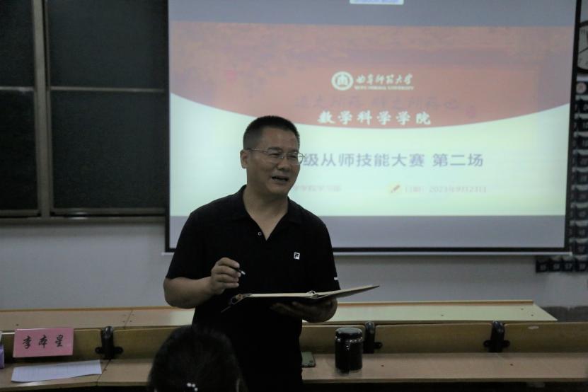 2023年从师技能大赛第二场于数学楼201教室举行。本次比赛邀请到了指导经验丰富的李本星老师以及参加山东省从师技能大赛并取得优秀成绩的李泽涵、王怡君、尹依同学出席担任评委。足球吧