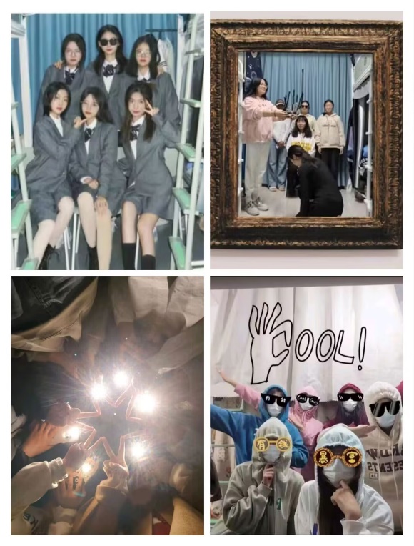 在创意拍照中,各个寝室的同学们纷纷发挥想象力,用各种有趣的姿势、道具和背景,拍摄出了极具个性的合照。有的寝室模仿了电视剧场景,有的则摆出了搞怪的造型,还有的以寝室为背景创作了有趣的故事。这些创意合照不仅仅是照片,更是学生们心灵手巧和团队合作的结晶。在准备过程中,舍友们相互协作、讨论,共同策划出最能代表他们宿舍风格的创意。这一过程增进了彼此之间的了解和友谊,使宿舍成为了一个更加温暖和谐的大家庭。