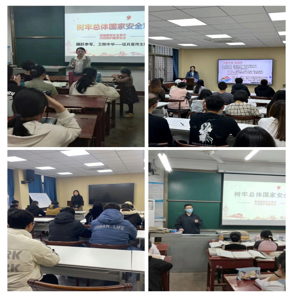 本次班会以“树牢总体国家安全观”为主题,首先讲述了什么是总体国家安全观,接着强调了征兵工作的重要性,并通过分享一些军人的英勇事迹和成长经历,激发了同学们的爱国热情和报国之志。然后讲述了一些大学生入伍参军的条件和要求,并详细介绍了征兵的政策法规、应征条件、报名流程以及优待政策等内容。最后落实到日常生活中,勉励同学们在学习和生活中要增强国家安全意识,共同维护国家安全。