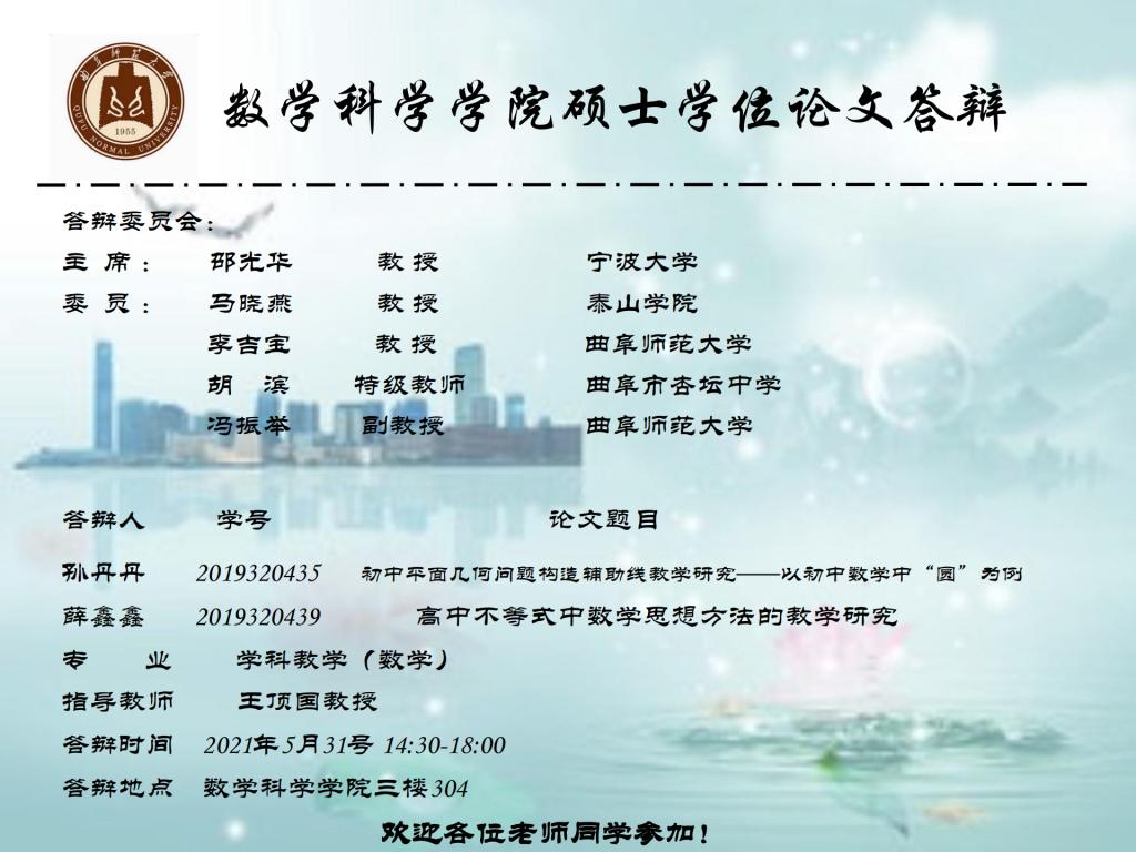 2021年硕士学位论文答辩公告(八)
