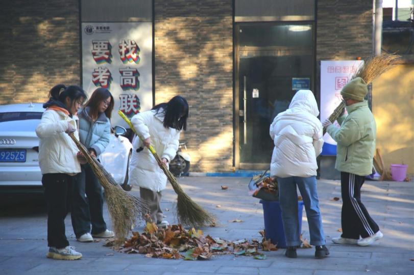 党员和入党积极分子在指定地点集合后,分组对周边区域的落叶进行全面清扫与集中处理,确保地面整洁干净,减少落叶堆积可能引发的安全隐患与环境卫生问题。尽管天气寒冷,但数科学子们的热情丝毫不减,大家齐心协力,经过努力,广场内的落叶被清理得干干净净,他们用实际行动为同学们还原了清爽舒适的公共空间。