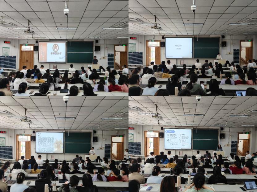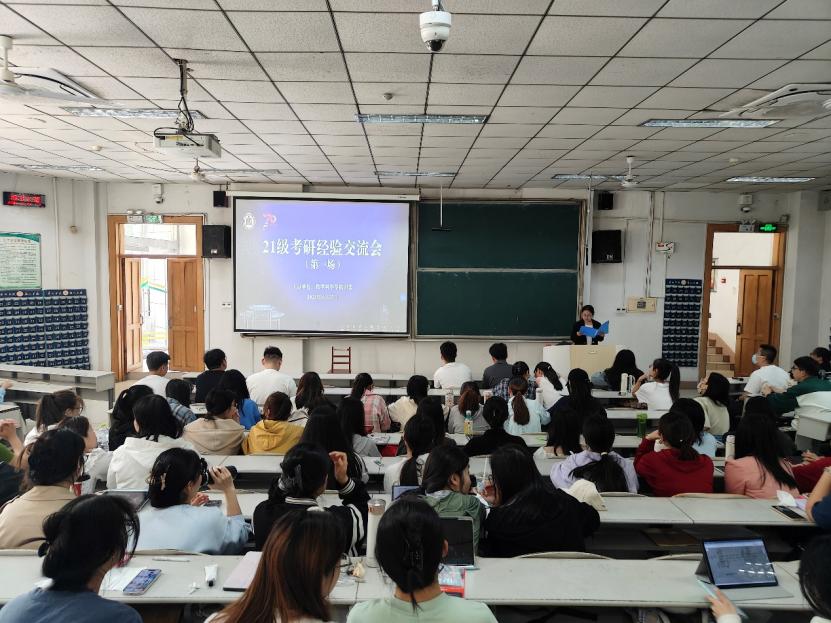 于4月27日在综合楼101教室举办以“研途筑梦启新程,经验领航破迷津“为主题的考研经验交流会。交流会邀请了2021级成功上岸的4位师哥师姐,向大家分享了考入大连海事大学、山西大学、江苏师范大学、华北电力大学的考研备考经验。