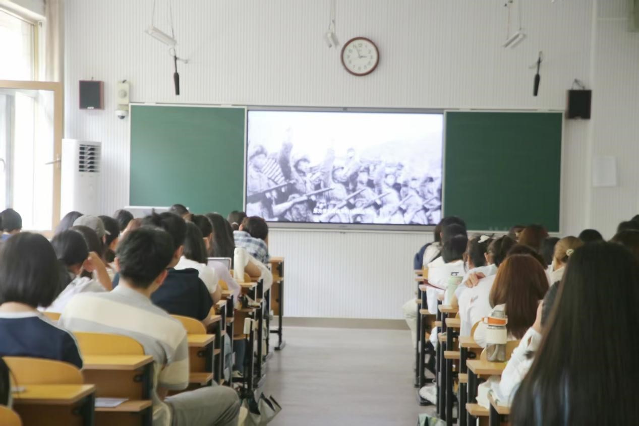 活动伊始,杜晨曦以一位亲历战役的老将士的真实事迹为切入点,将学员们的思绪带回到抗美援朝那段波澜壮阔的岁月。随后,杜老师播放了长津湖的相关纪录片,影片中纷飞的战火、冻僵的战士、惨烈的战斗场景震撼着每一位学员。通过学习,同学们真切感受到志愿军战士保家卫国的坚定信念与舍生忘死的崇高精神,不少学员都被影片中的故事深深打动。
