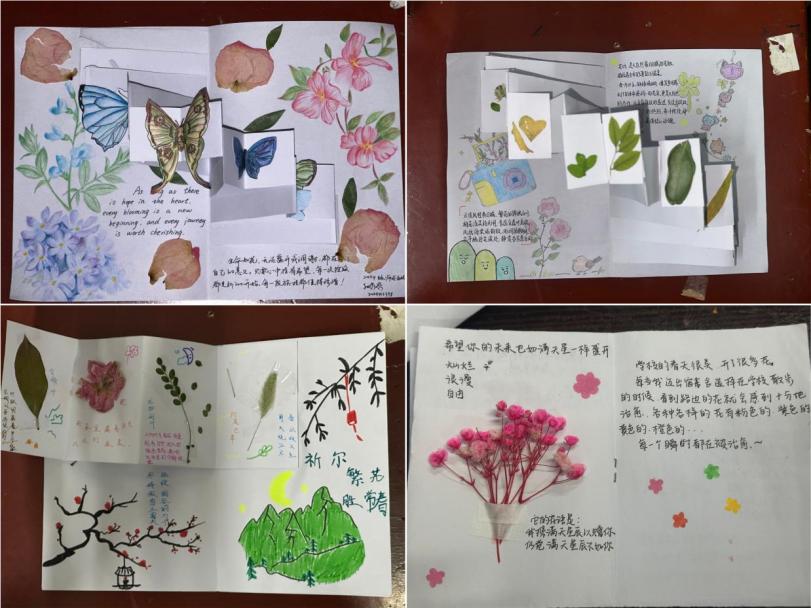 本次生命绘本活动邀同学们走进自然,以树叶、花朵为“颜料”,用标本制作定格季节的馈赠。同学们踊跃参与,围绕花叶主题精心绘制绘本。他们走进自然收集素材,观察叶脉纹理、花瓣形态,从植物生长到花语故事,内容丰富有趣。这些绘本色彩绚丽,每一幅图画都展现着同学们对自然的热爱与独特创意。