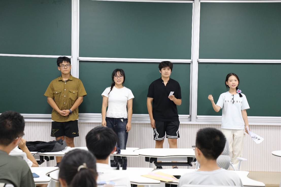 本次反诈宣传由学生干部扮演成辅导班工作人员深入各班进行招聘宣传,鼓动新生扫码进群,诱导学生缴纳入职培训费,随后“反诈专家”及时出现,拆穿骗局,避免了学生财产遭到损害。并以三句半的表演形式向同学们普及了反诈方面的知识,提醒同学们⾯对骗局时要保持冷静、仔细斟酌,切实提高防范意识,以实际行动践行居安思危理念。新生们积极响应,现场掌声雷动,将全场气氛推向高潮。