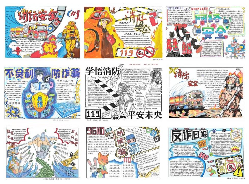 活动期间,同学们积极响应,踊跃参与,充分发挥创意巧思,创作出一批内容丰富、形式新颖的作品。大家将防诈骗、消防安全、网络安全等知识,巧妙融入生动活泼的画面与简洁有力的文字之中,以艺术化的语言传递安全理念,让安全知识深入人心。最终,经评审小组严格评选,多份兼具知识性与艺术性的优秀作品脱颖而出。