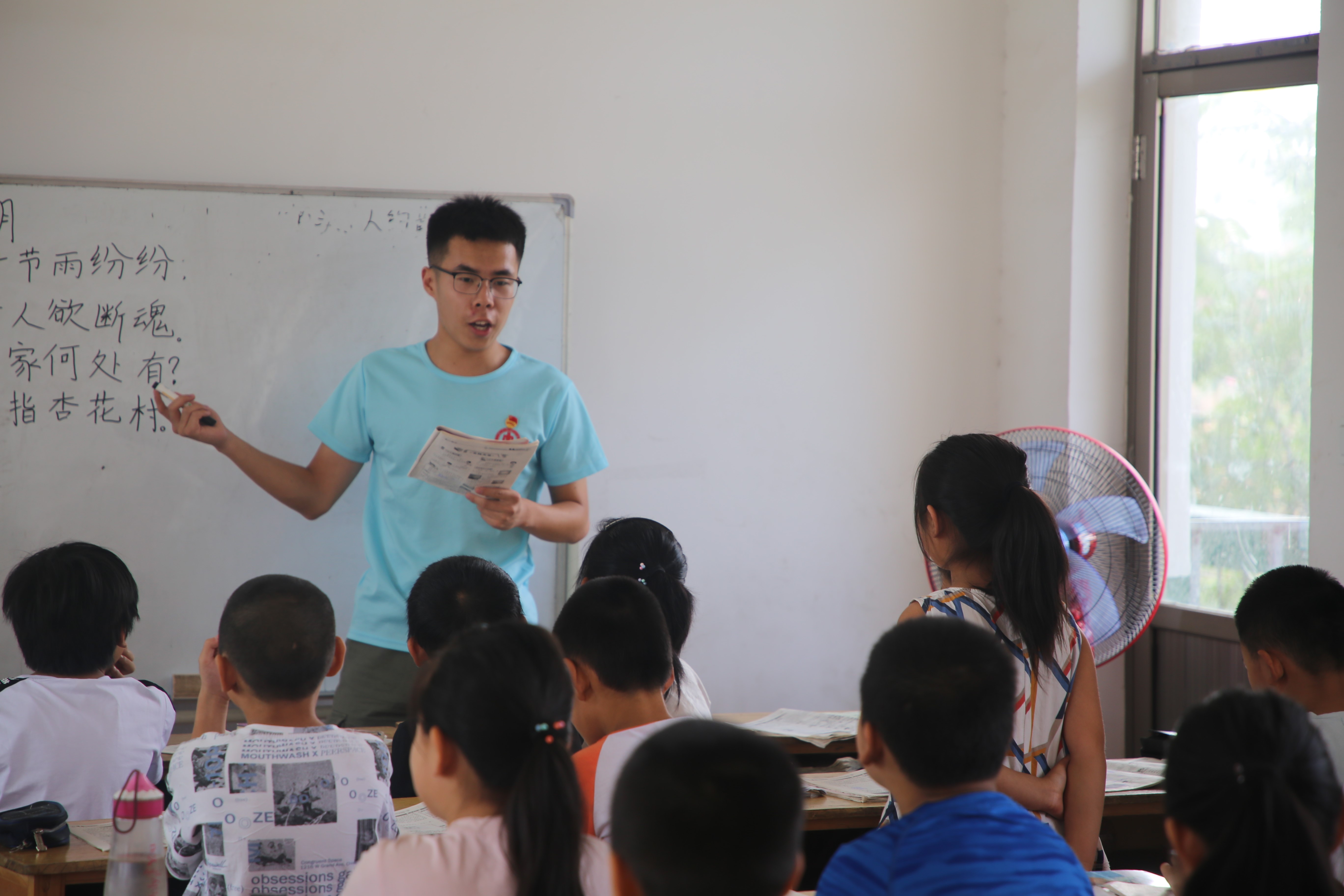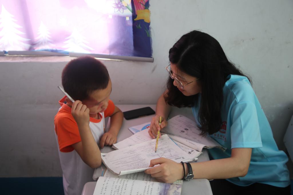 经过前期的了解,队员们依照预先的分工进入各自负责的班级,着手学生们的日常学习、生活。首先,队员们做了一下简单的自我介绍,活跃了一下课堂氛围。而后,为了更好地了解学生们的学习情况,队员们针对不同水平的学生展开相应方式课业辅导活动。统一讲解辅导与个别指导相结合,严宽有度。