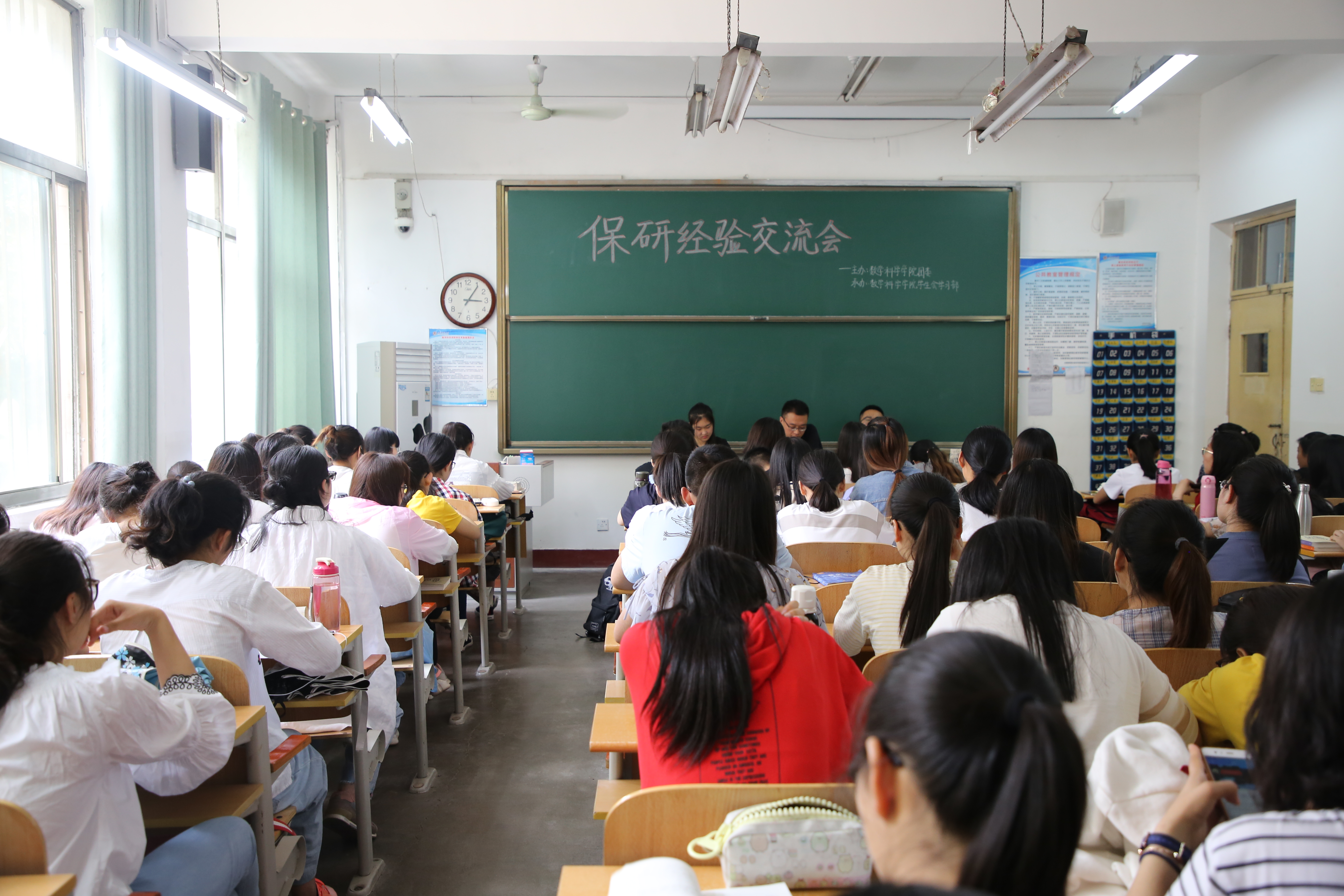 团委主办的保研经验交流会在数学楼104教室成功举行。大四学生高世伟、段玉莹、张震参加了此次活动,他们分别在去年的研究生推免中获得山东大学、复旦大学、北京师范大学的研究生保送资格并成功录取。