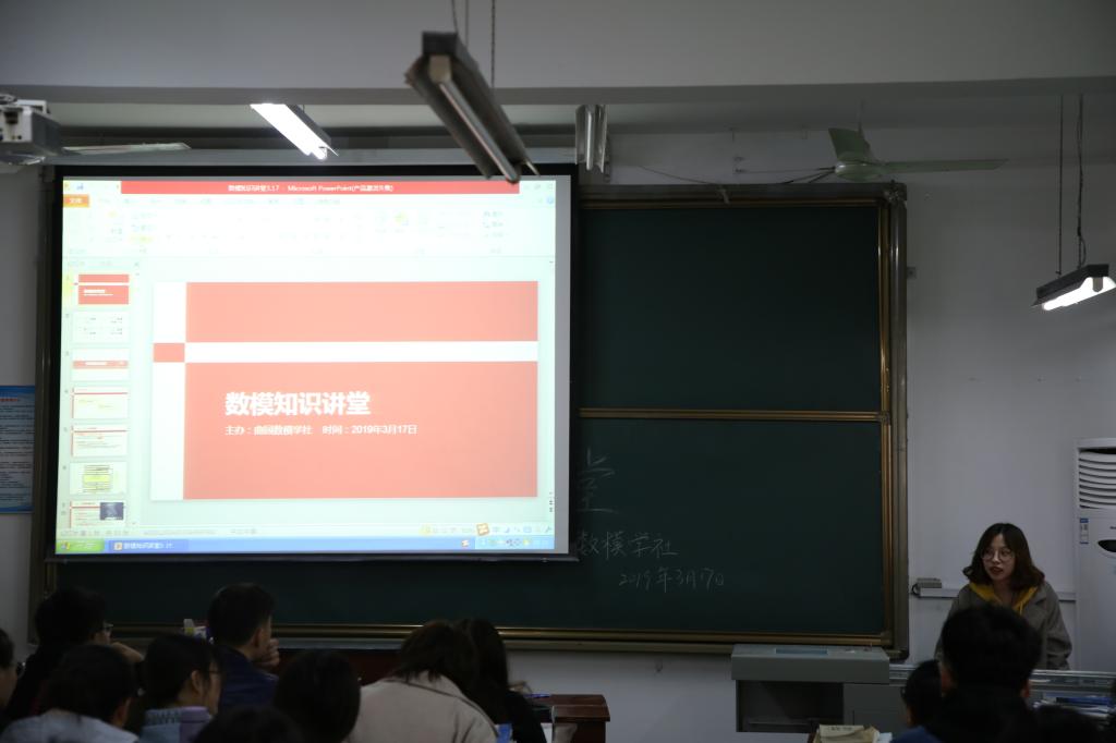 曲园数模学社主办的数学建模知识讲堂在教学楼圆满举行,17级王天慧同学担任主讲,部分18级数学建模社社员参加。