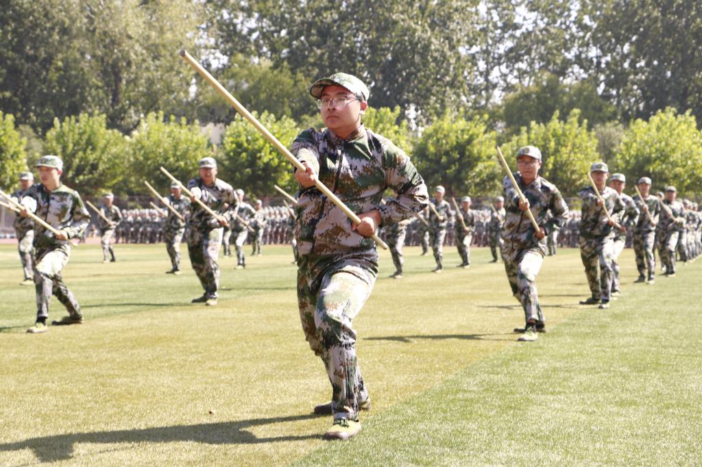 分列式表演,队伍中的每一位同学都打起了十二分的精神,动作有力,步伐坚定;擒敌拳营和棍术营的演练更是震撼人心,充分展示了每一位经过军训锻炼的新生心中不抛弃,不放弃,敢于亮剑的精神和勇敢无畏、勇往直前的优秀品质;柔中带刚的内务表演、精准严密定向越野演练还有流畅舒展的心理健康操表演,更是展现了当代大学生斗志昂扬、积极向上的风采。教官们的实战演练,让人身临其境,得到了老师、同学们的阵阵掌声,把现场气氛推向高潮。