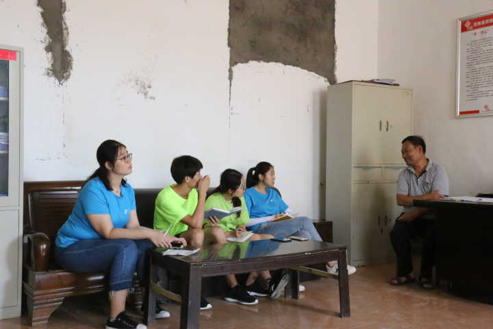 "践行盛夏"社会实践团队队员们进行了座谈。“我们肩负组织重托、群众期盼,理应身先士卒,带领涝坡镇走向康庄大道。”毛永正书记说道,“我们定期组织党员进行集中学习,学习中央文件、总书记讲话等,做到学习年有计划、月有安排,人人有学习笔记,通过这种方式进一步提高全村党员干部的思想认识,使党员在各个工作岗位上发挥着模范带头作用。同时,我们将村子里的62名党员分成六个党小组,每组设置一名组长,秉承着“四议两公开”的工作理念,当碰上重大决议时,先进行组内讨论,然后由组长将组内意见带到党员大会,最终根据全体党员意见进行决议。这种全员参与的工作思路,极大调动了党员参与事务管理的积极性,促进了村子经济、政治的发展。”