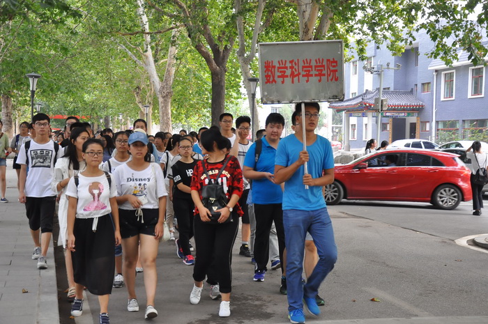 2015级学生中挑选出优秀热心的30人组成“导游组”,每组两到三人,带领新生按照原来制定好的计划游览校园。边走边讲的形式创造出自由和谐的氛围,新生们怀着憧憬和好奇欣赏校园美景、彼此交流。五点半,游览结束,队伍有序带回足球吧