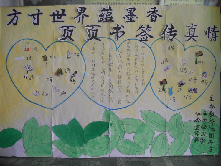 团总支主办,学习部承办、版宣部协办的“方寸世界蕴墨香,页页书签传真情”书签设计展板在足球吧