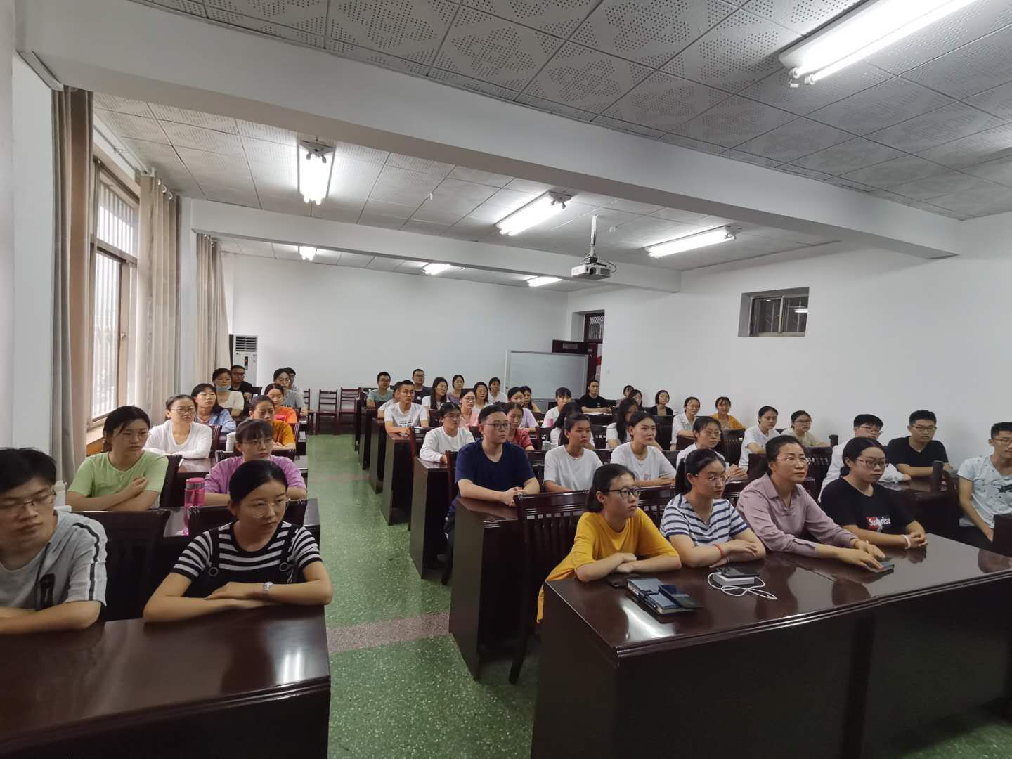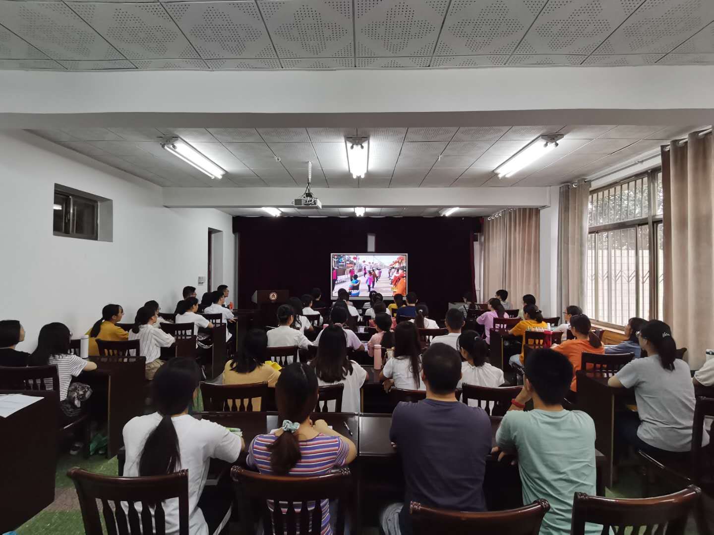 团委书记朱伟卫和2017级师范生一起观看了颁奖典礼。