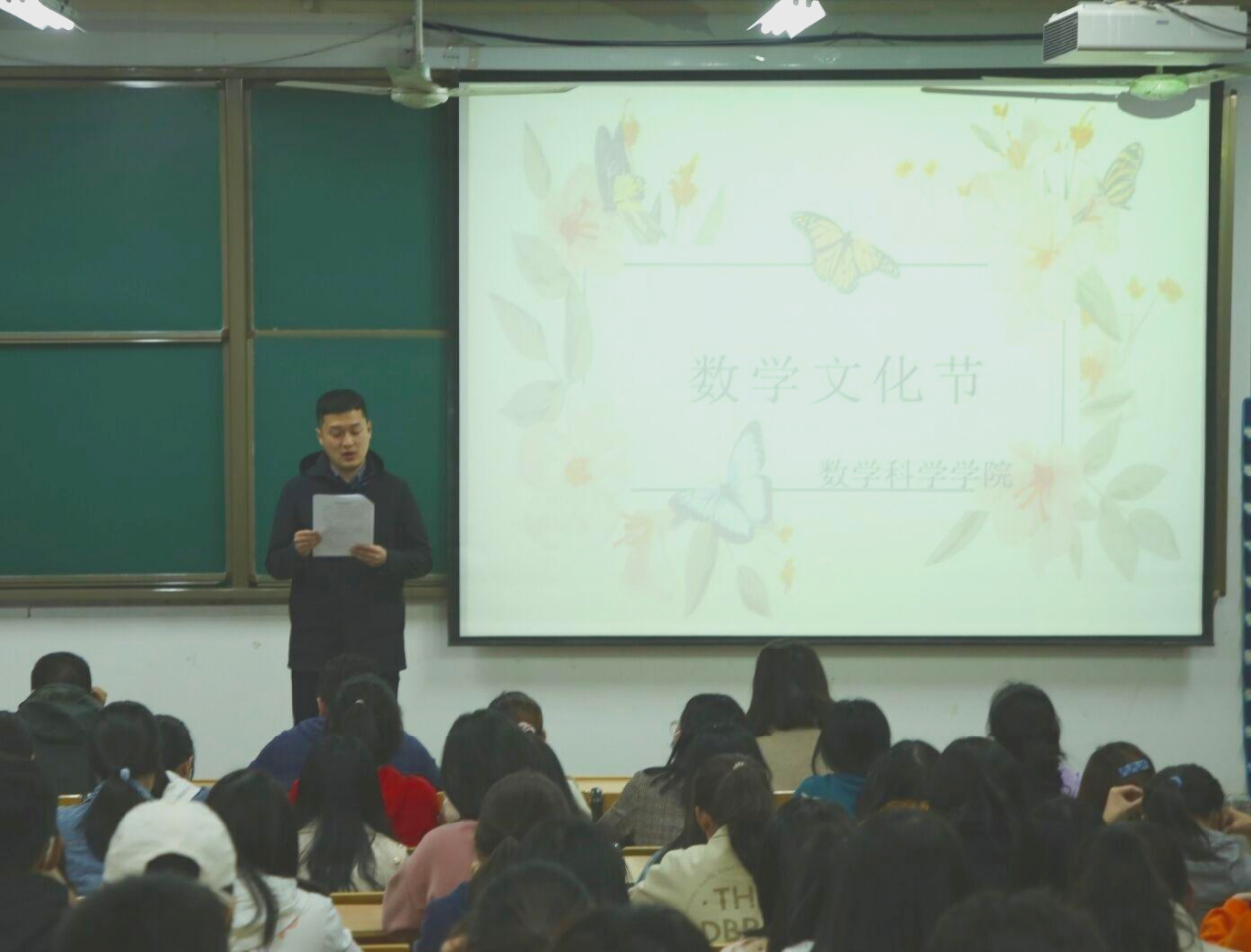 辅导员荣斌宣读数学文化节策划书。文化节期间,足球吧