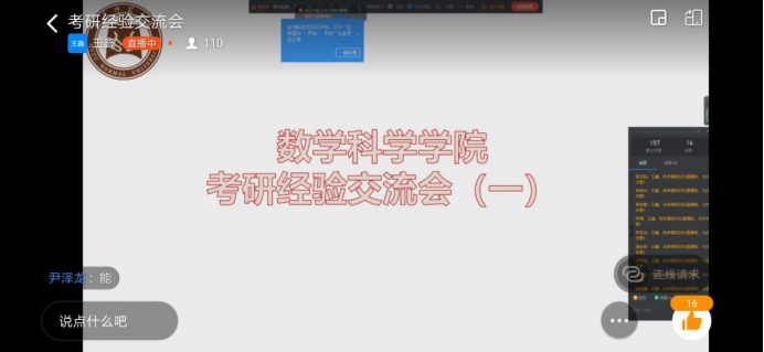 于4月19日晚召开考研经验交流会,本次交流会线上线下同步进行。17级朱礼昊、刘瑞萌与学生进行经验分享。