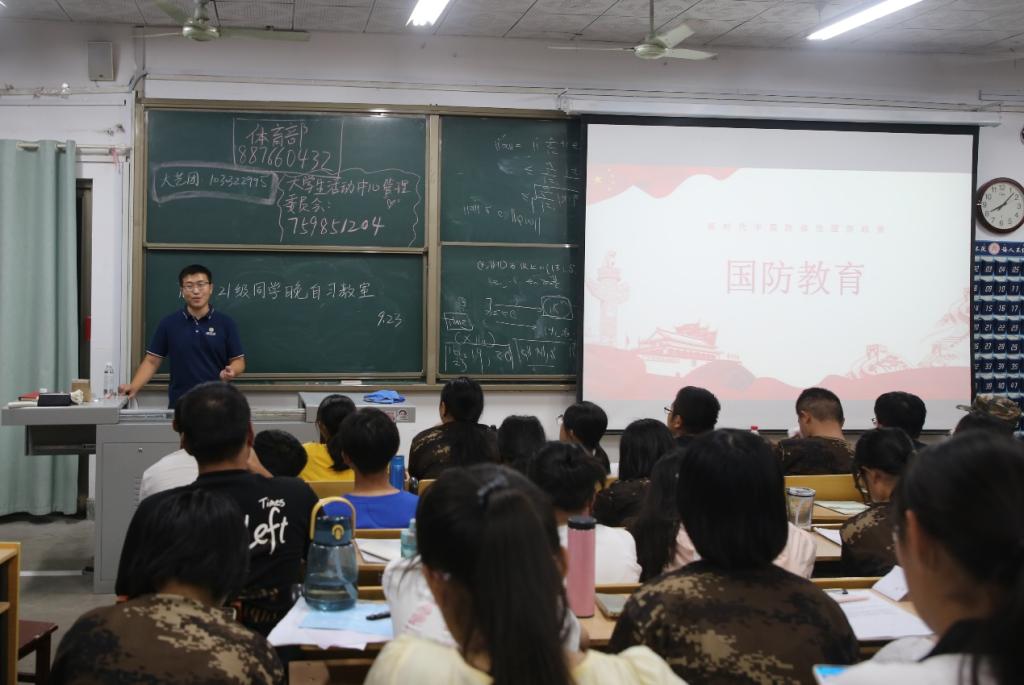 本次班会由2021级辅导员吕瑞源主持,他从国际安全形势、新时代中国防御性国防政策、履行新时代军队使命任务、积极服务构建人类命运共同体四个方面向新生进行了国防知识普及教育。最后,他还向同学们发出号召,作为新时代的大学生,要树立居安思危、奋发进取、自强不息的民族精神,自觉增强国防观念、国家安全意识,自觉维护国家安全。
