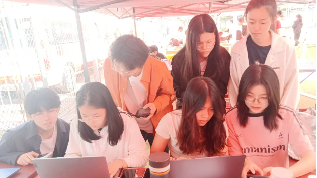 今天虽然是第二天,但是老师和同学们的热情依然高涨,为了给运动员加油打气、活跃现场气氛,足球吧
