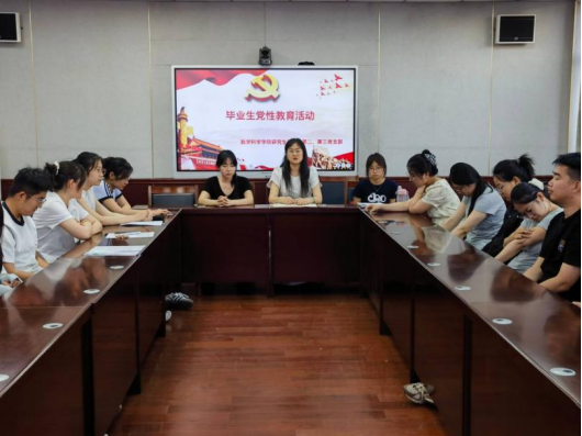 研究生第一党支部书记韩琳琳主持,全体研究生毕业生党员参与。