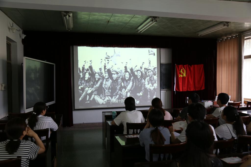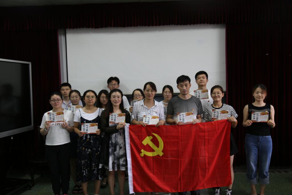 随后,全体党员观看了微电影《红色气质》,了解了共产党人始终不忘初心的优秀品质,大家都深深的感受到作为一名共产党员的光荣。研究生党员李雪婷、李兆赐为大家朗诵了诗歌《颂党》,感情真挚,抒发了强烈的爱国情怀。