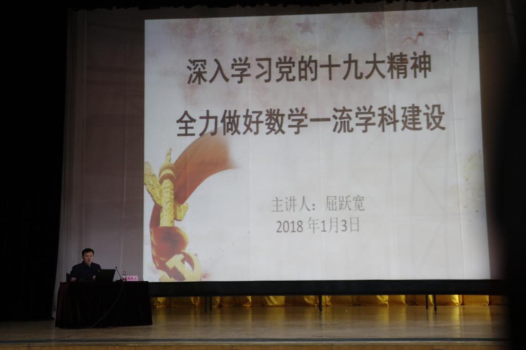 党委书记屈跃宽于大学生活动中心礼堂开设了一堂以“深入学习十九大精神,全力做好数学一流学科建设”为主题的专题党课。足球吧