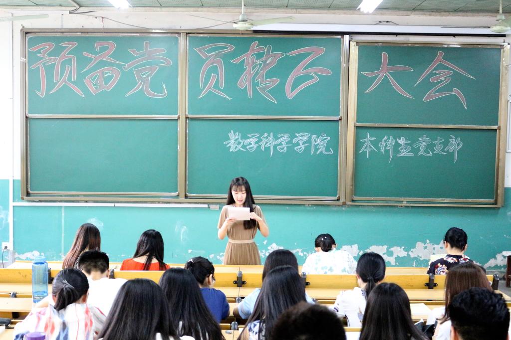 本科生党支部在数学科学教学楼101教室举办了预备党员转正大会,本次大会主要讨论高金颖等8位预备党员转正问题。出席本次大会的有党支部书记朱伟卫,副书记杜晨曦、组织委员郅艳梅、辅导员张惠,以及16位正式党员和14位预备党员,本次大会由朱伟卫主持。