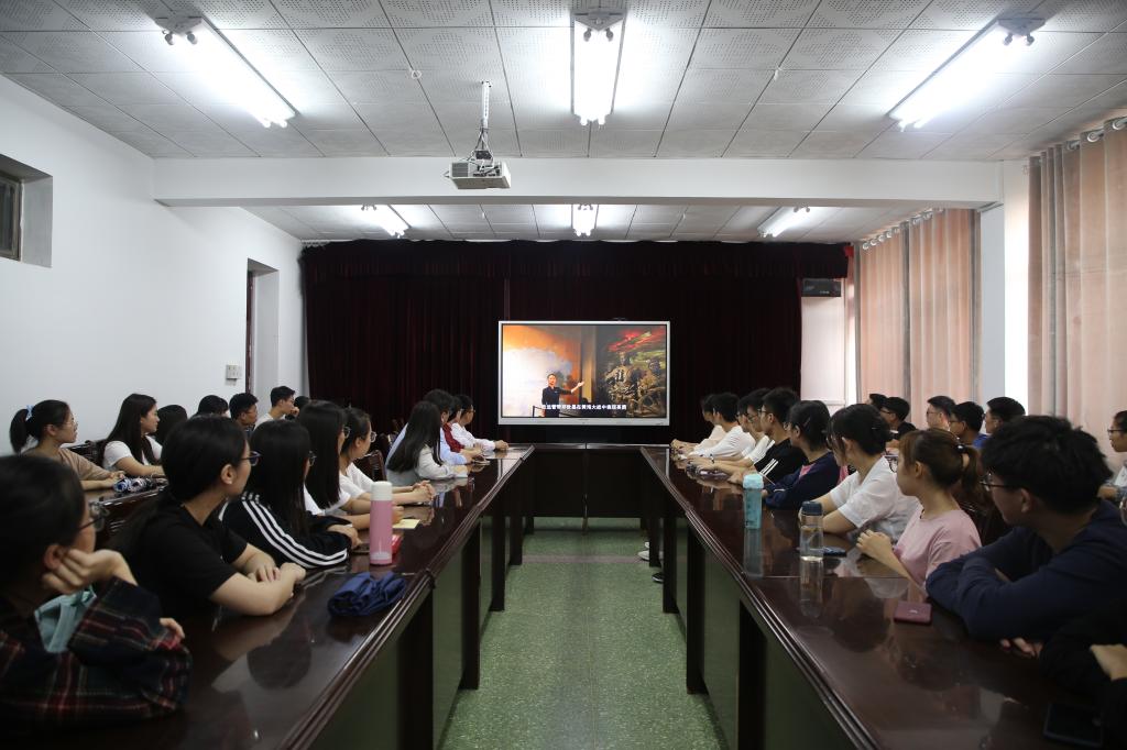 党委书记刘建新、副书记曲凤东、各支部书记、党员和入党积极分子代表一同观看。