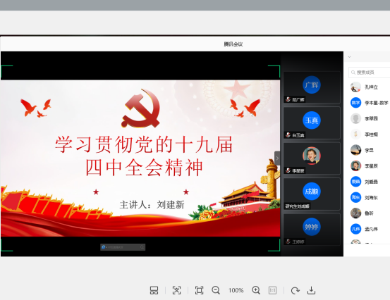 党委书记刘建新同志以“学习贯彻党的十九届四中全会精神”为主题通过腾讯会议开展线上讲党课活动,足球吧